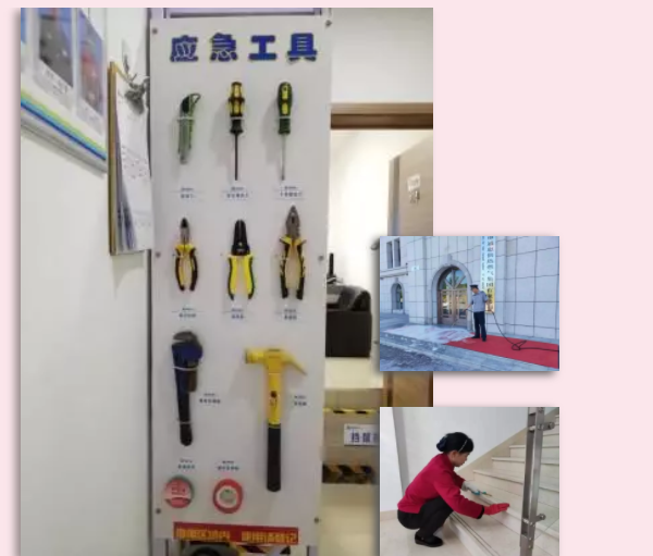 物業(yè)人必須練就眼里有活兒和把活兒干的“漂亮”的本領(lǐng)。辦公樓的石材臺階會被保潔阿姨手中沾著特別調(diào)制藥劑的小刷子,刷的更加明亮光彩。樓門口暗淡無光的地毯會被保安大叔手中的壓力水槍,洗得更加鮮紅欲滴。不論是種樹拔草還是防洪除雪,不論是門、窗、玻璃,還是臺、壁、地板,都要有物業(yè)人不畏酷暑嚴(yán)寒,不畏雨雪寒霜的全情付出。