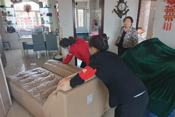 物業(yè)公司員工幫助高齡業(yè)主搬沙發(fā)