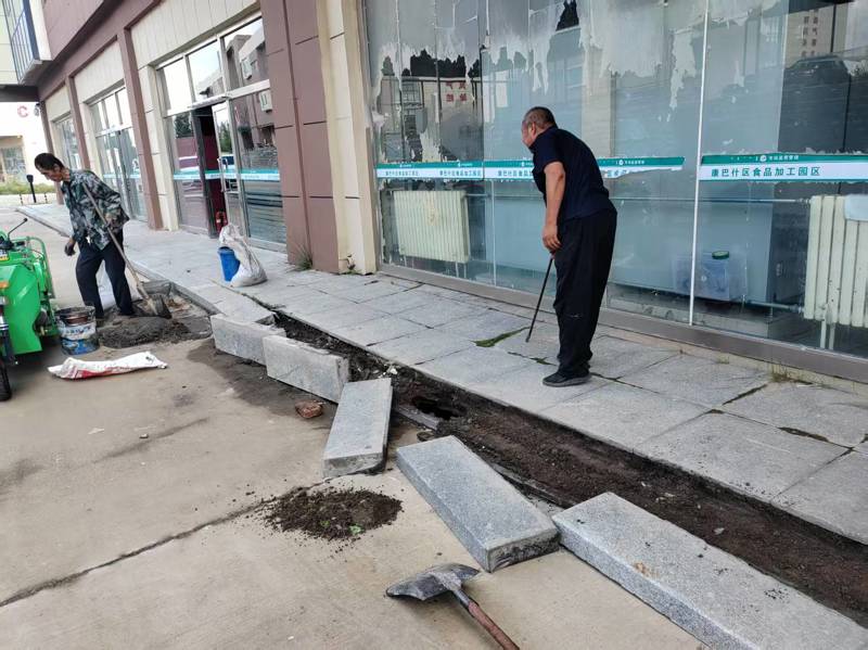 對(duì)食品加工園區(qū)臺(tái)階下方空鼓塌陷進(jìn)行維修